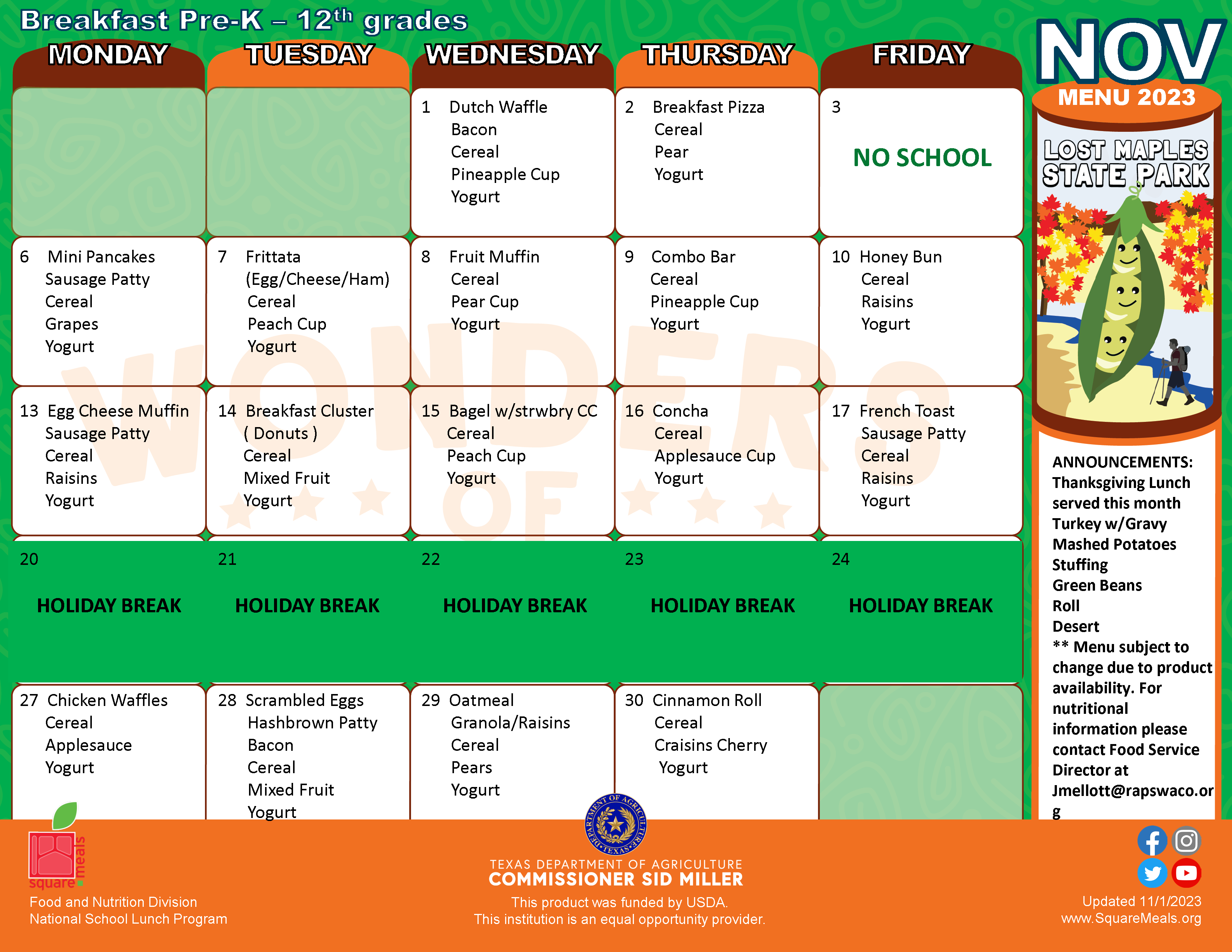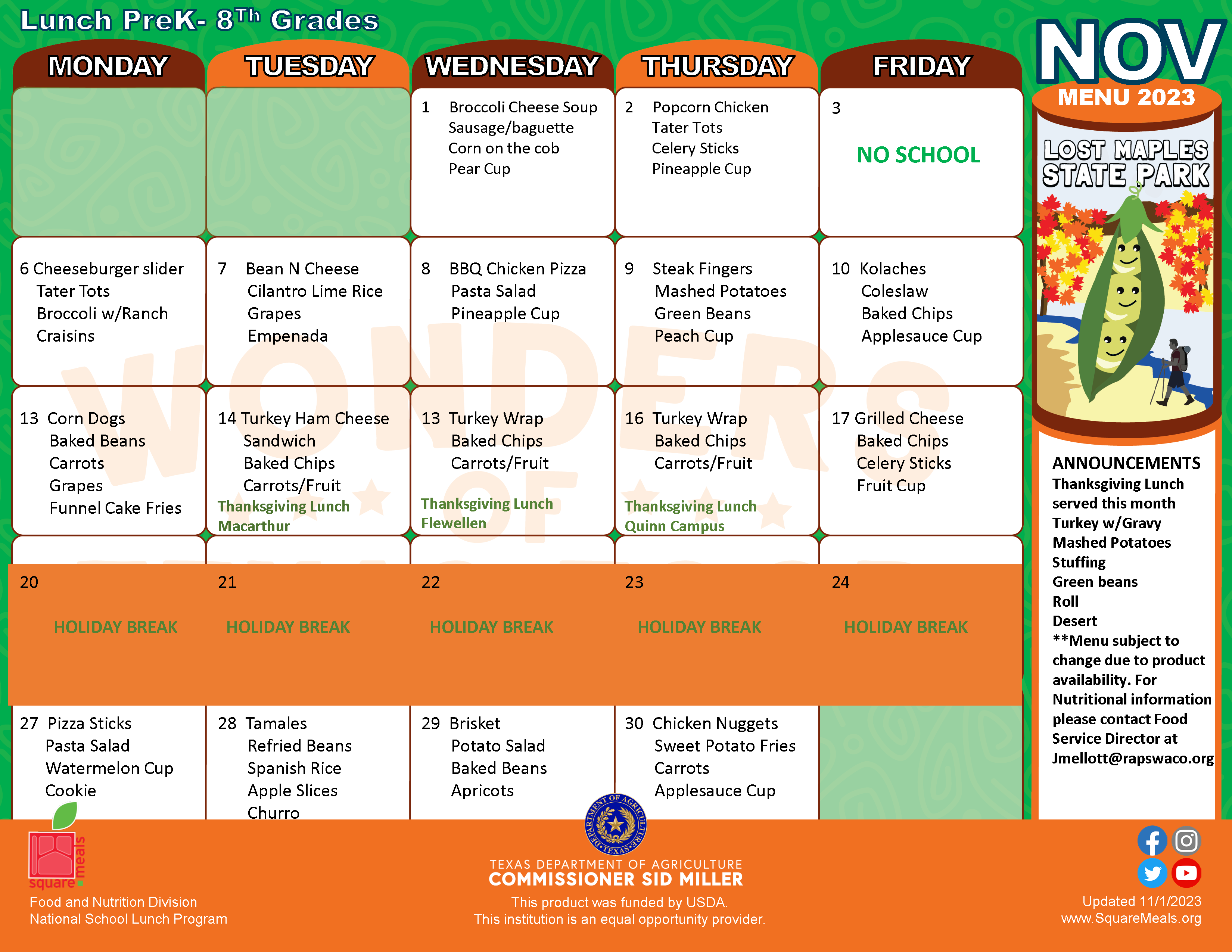11/20-24 NO SCHOOL: Thanksgiving Holiday
